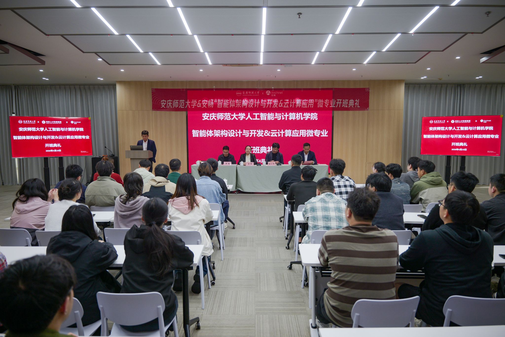 4月21日,安庆师范大学人工智能现代产业学院云计算应用微专业第一期结业典礼在安庆市筑梦产业园顺利举行。28名结业学员签约入职安庆安畅网络科技有限公司,标志着学校在应用型人才培养方…
