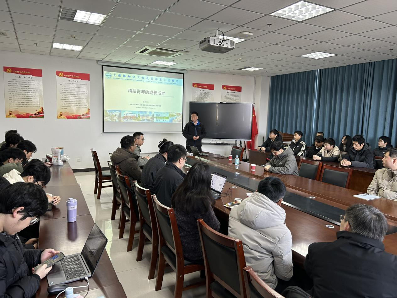 随后,吴信东教授分享了高质量论文写作、科研团队建设与项目申请的前沿见解,并介绍了其团队在大数据知识工程、动态信息处理等领域的最新成果,展望了人工智能的未来发展趋势。他鼓励青年学者培养国际视野与创新能力,将个人成长融入国家科技发展大局。