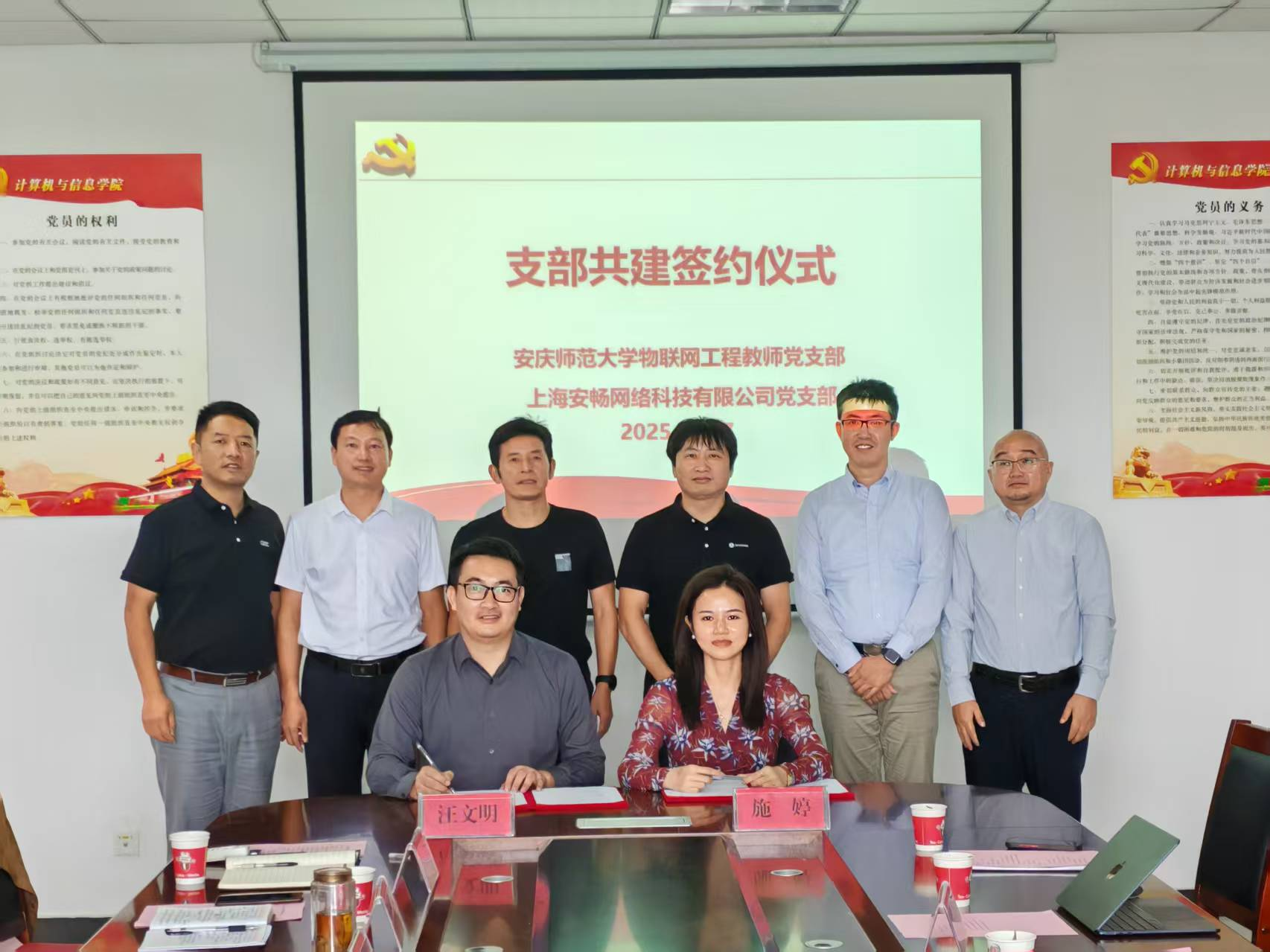 2025年10月17日,物联网工程教师党支部与上海安畅网络科技有限公司党支部举行支部共建签约仪式,推动党建与产教融合协同发展。学院领导班子成员、上海安畅公司负责人、物联网工程教师党支部书记等参加仪式。