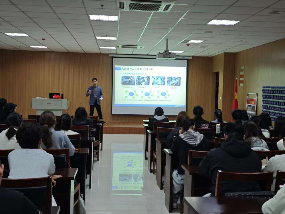 李挺结合自身从业经验,深入解读了大数据与人工智能行业发展现状,全面分析了行业发展趋势、面临的挑战及各类应用场景,有效激发了同学们投身AI领域的热情与动力。针对有意向深耕AI行业的学生,他量身制定了从大一至大四的系统学习路线:大一夯实数学、编程等基础功底,筑牢专业根基;大二深耕专业核心课程,构建完整的知识体系;大三结合自身职业规划,针对性提升专业深度,积极参与各类AI竞赛,积累实战经验;大四重点积攒项目实践经验、尝试发表相关学术论文,并系统学习面试技巧,为未来升学或就业做好充分准备。