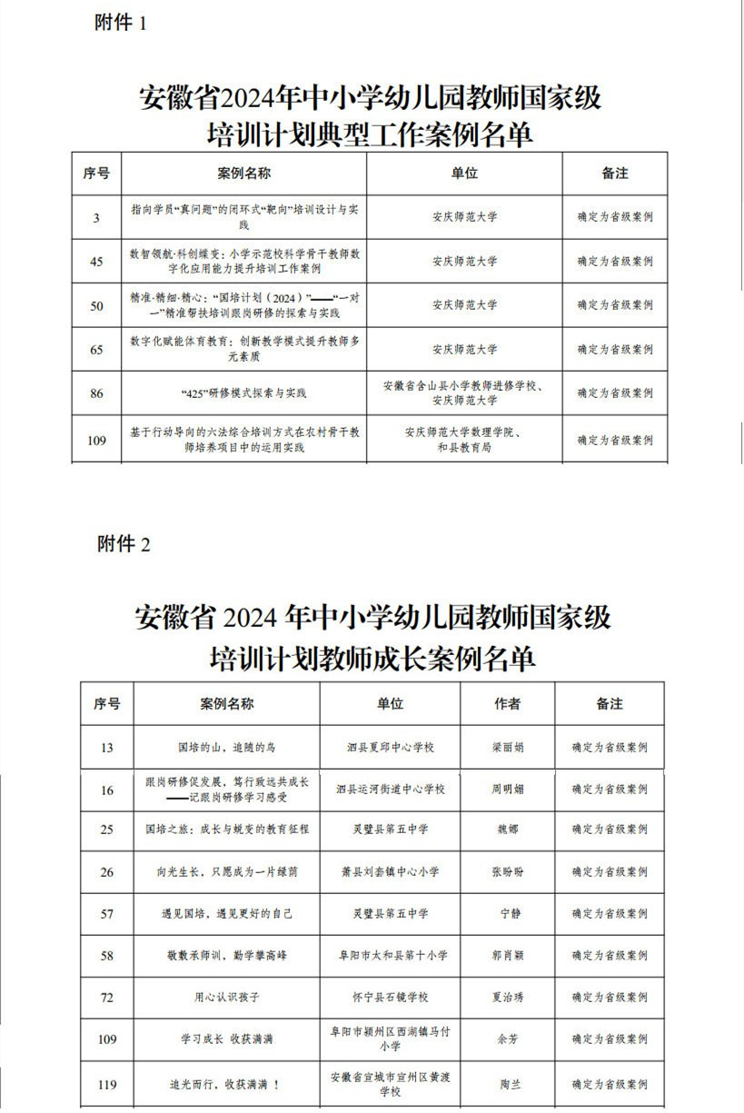 日前,安徽省教育厅发文公布了2024年中小学幼儿园国家级培训计划典型工作案例和教师成长案例名单,我校报送的6项工作案例和9个教师成长案例成功入选,入选案例数创历史新高。我校本次入选的6项省级典型工作案例分别是:外国语学院报送的《指向学员“真问题”的闭环式“靶向”培训设计与实践》,数理学院报送的《数智领航·科创蝶变:小学示范校科学骨干教师数字化应用能力提升培训工作案例》《精准·精细·精心:“国培计划(2024)”——“一对一”精准帮扶培训跟岗研修的探索与实践》,体育学院报送的《数字化赋能体育教育:创新教学模式提升教师多元素质》以及由数理学院与和县教育局合作报送的《基于行动导向的六法综合培训方式在农村骨干教师培养项目中的运用实践》,马克思主义学院与含山县小学教师进修学校合作报送的《“425”研修模式探索与实践》。其中《指向学员“真问题”的闭环式“靶向”培训设计与实践》被省教育厅推荐参加教育部“国培计划”典型工作案例评选。