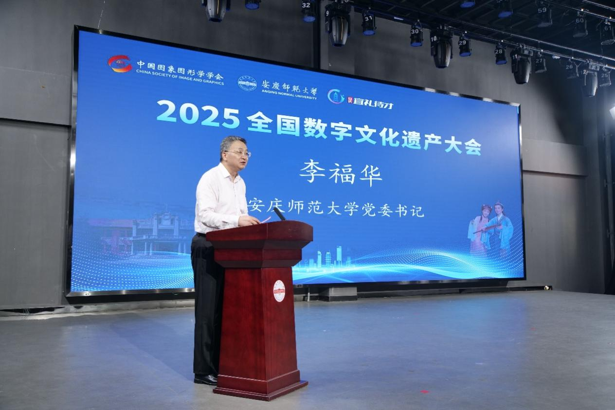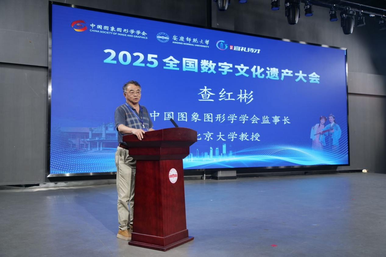 查红彬致欢迎辞,他代表大会主办单位感谢安庆市委、市政府、安庆师范大学等各方的大力支持,向参会的嘉宾和专家学者表示热烈欢迎,他表示,近年来数字文化遗产大会品牌活动影响力日增,促进了文化与科技的深度融合,推动了国家文化数字化战略能力跃迁。