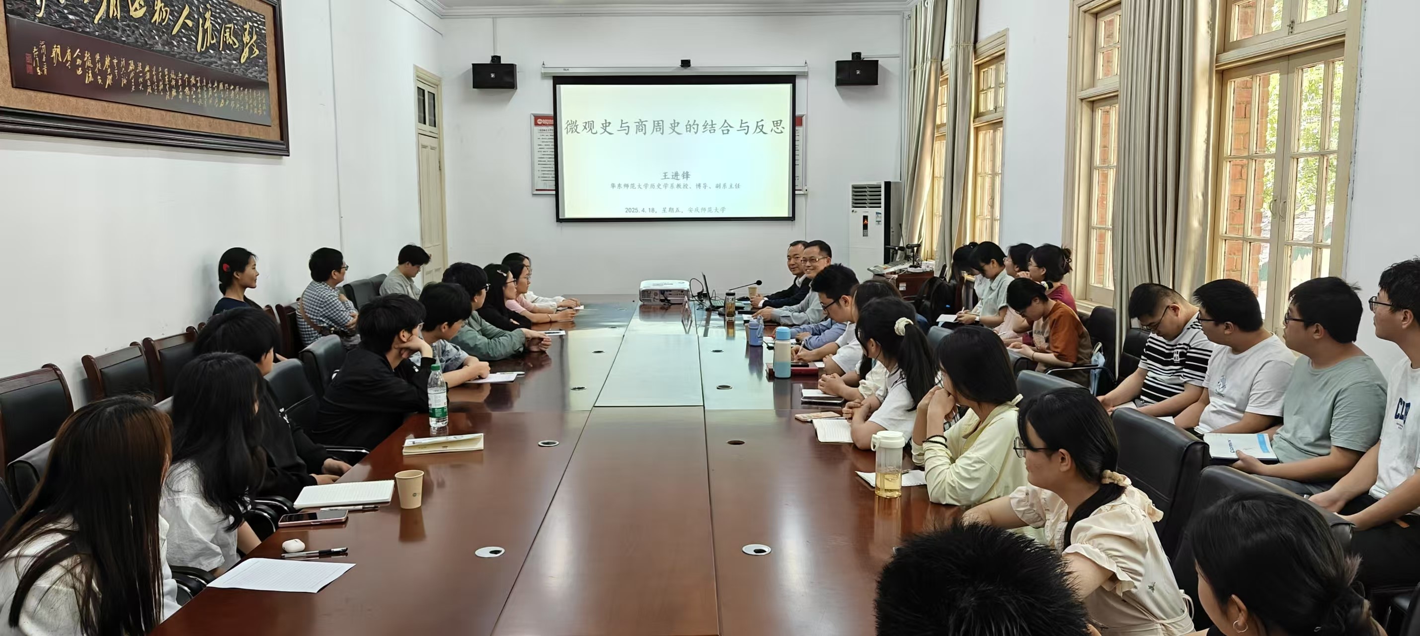 4月18日,华东师范大学历史学系副系主任、博士生导师王进锋教授应邀做客敬敷人文讲坛,在菱湖校区二楼会议室作题为“微观史和商周史的结合与反思”的学术讲座。本次讲座由人文学院副院长沈志富教授主持,人文学院部分青年教师和研究生、本科生参与活动。