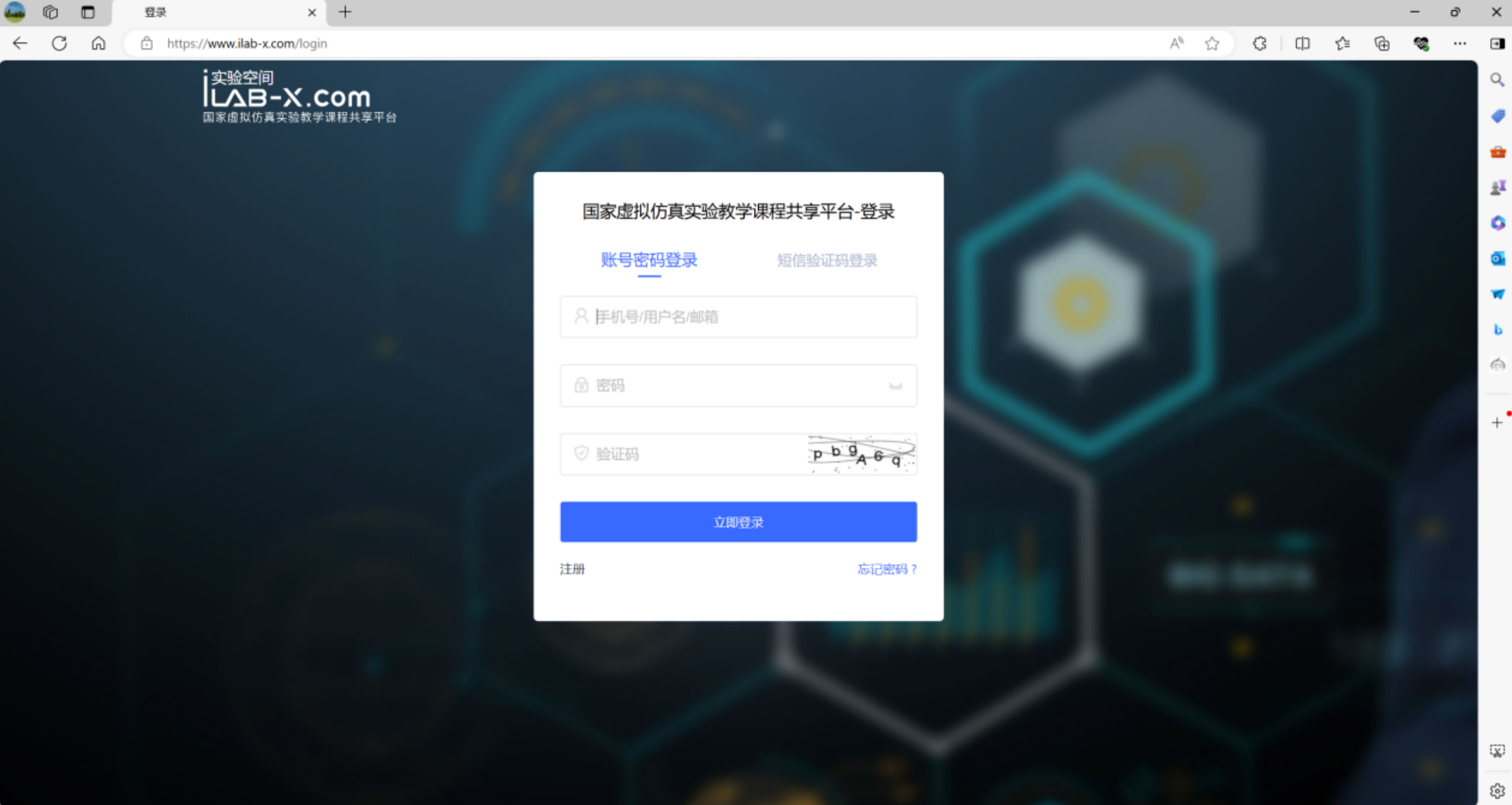 进入国家虚拟仿真实验平台 https://www.ilab-x.com/details/page?id=10873&isView=true 点击注册按钮 按提示注册账号,填写个人信息并登录