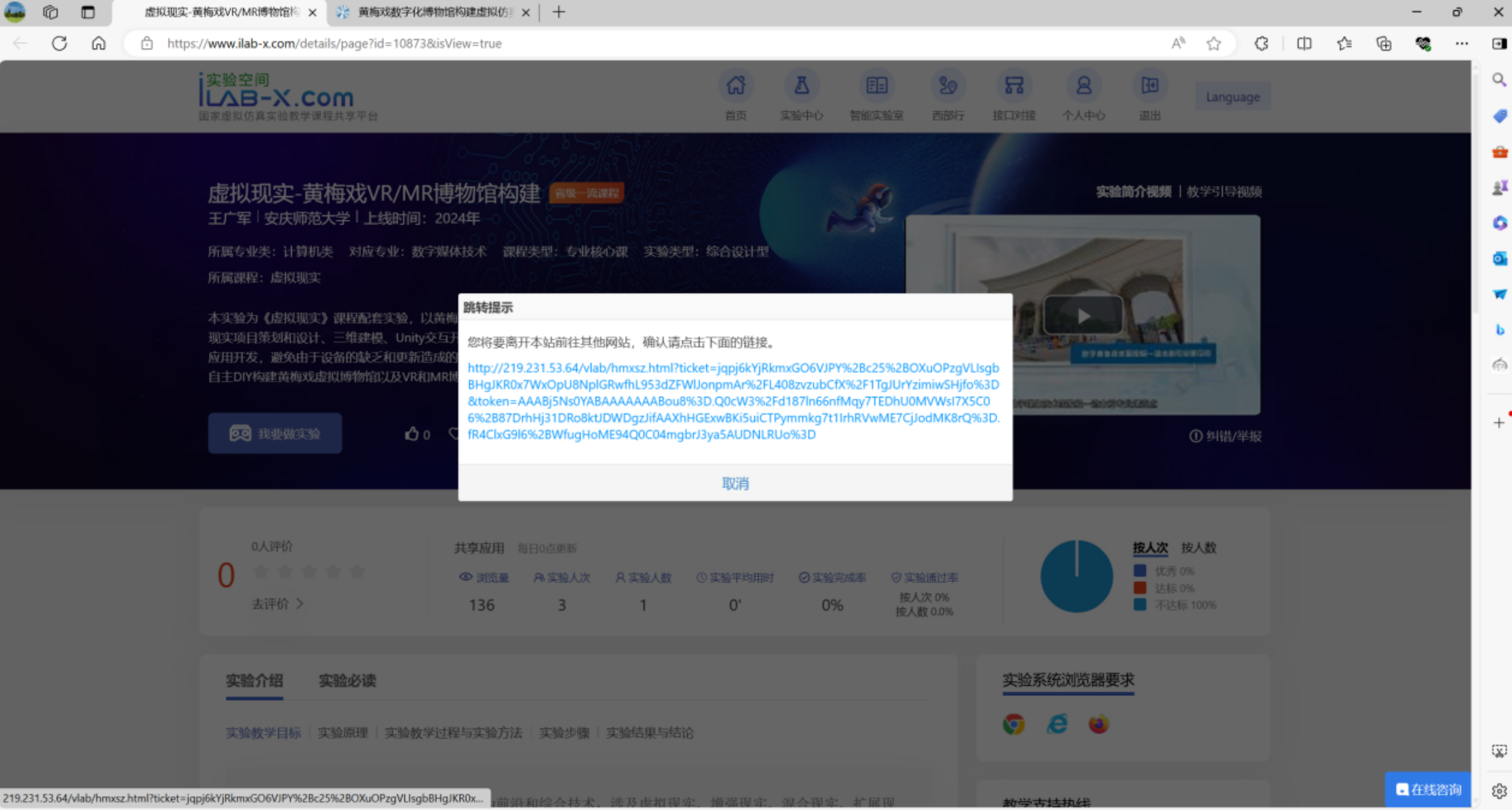 1. 登录完成后 再次进入上述网址 即可快速跳转到实验详情页面,点击页面中的“我要做实验”字样,点击出现的弹窗里的网址,进入实验资源页面
